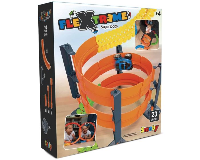 Set composto da 2 Superloop da assemblare che possono essere montati in verticale, in orizzontale, o in parti differenti del circuito e possono essere allungati utilizzando i binari che compongono la pista. Una soluzione originale per creare facilmente giri della morte e spirali nella tua pista e per rendere i circuiti Flextreme sempre più impressionanti!