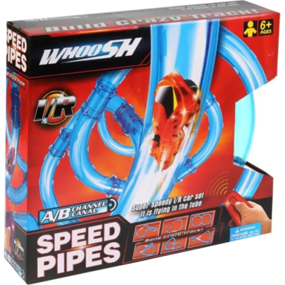 Circuito automobilistico completamente nuovo, che consiste in tunnel tortuosi che fungono da pista da corsa con un’auto posizionata all’interno. Molte le combinazioni del percorso; attiva il telecomando per vedere il veicolo che sfreccia attraverso i tubi e si illumina al buio.