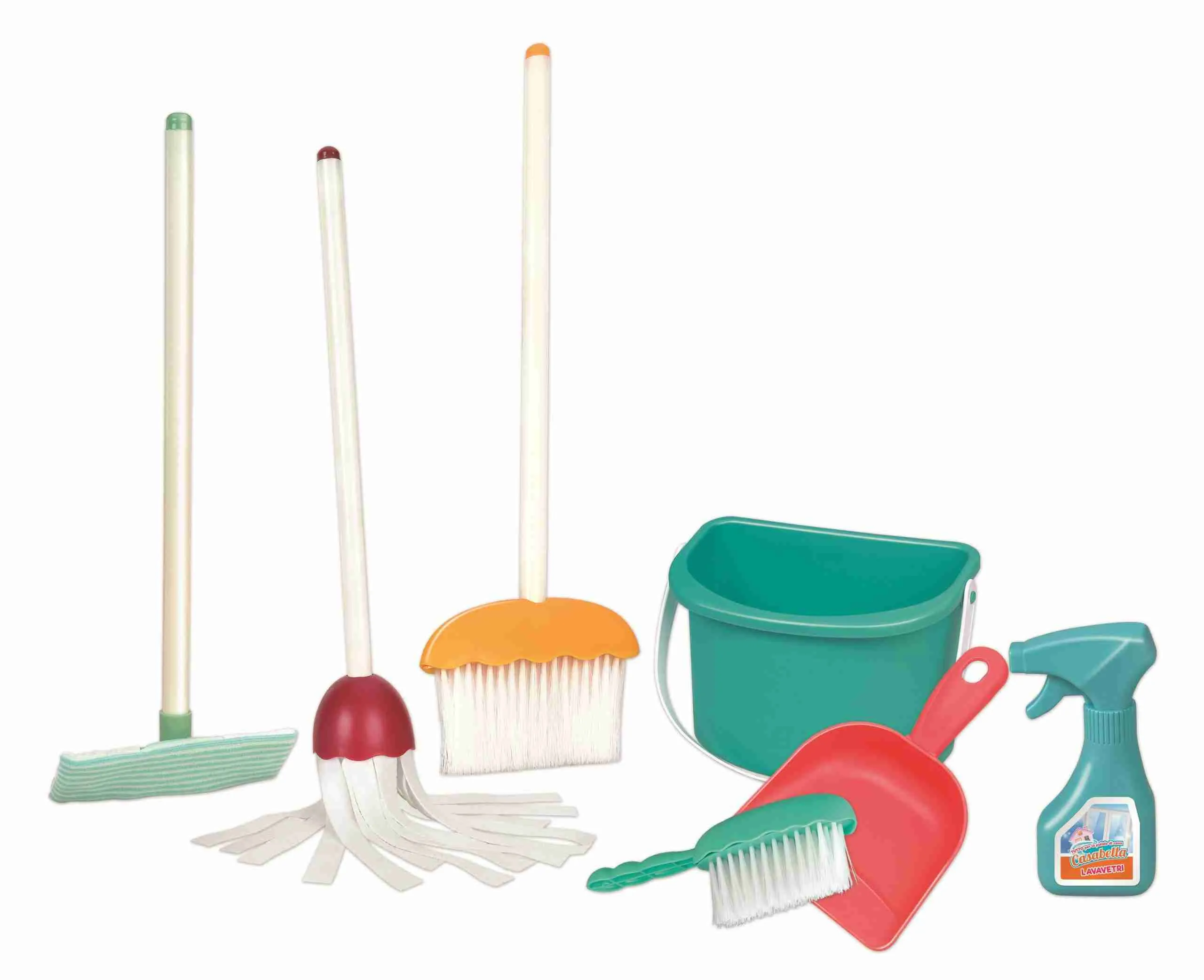 Mettiamoci all’opera e diamo una bella rassettata alla casa con questo bellissimo playset. Include 13 pezzi: scopa, spazzolone, mocio, secchio e tanti accessori per far splendere la casa!